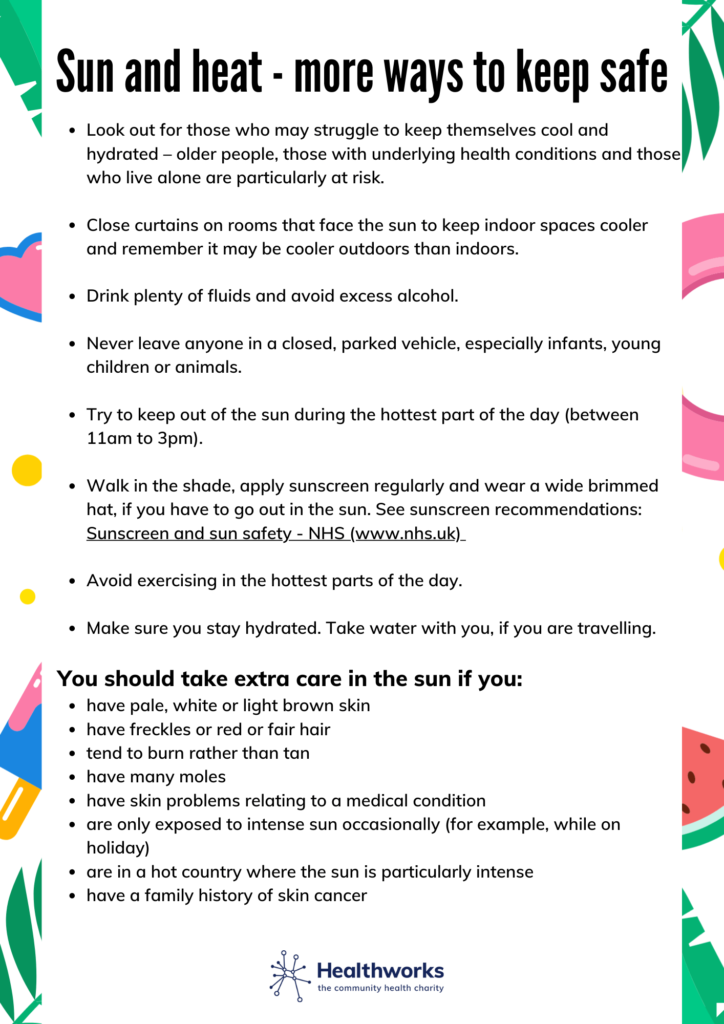 Stay safe in the sun and heat – we’ve also put together a free digital leaflet with some really useful information and top safety tips for you to use and share!